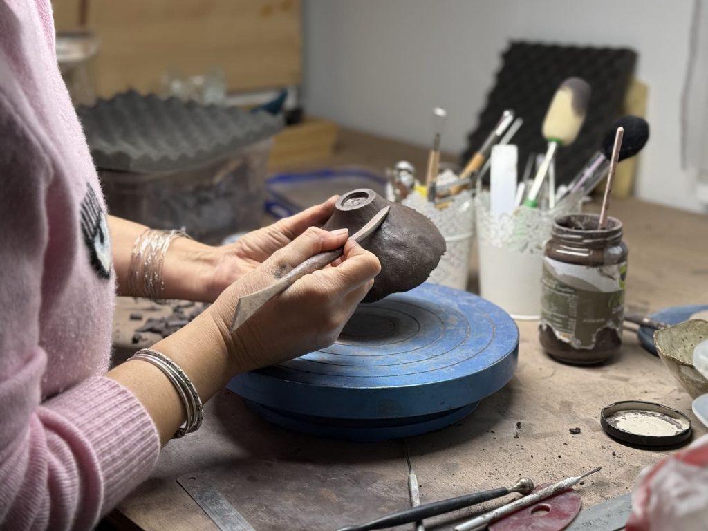 Dans cet article, j’ai envie de t’emmener dans les coulisses de mon atelier et de te montrer comment je crée une tasse en grès, étape par étape.
