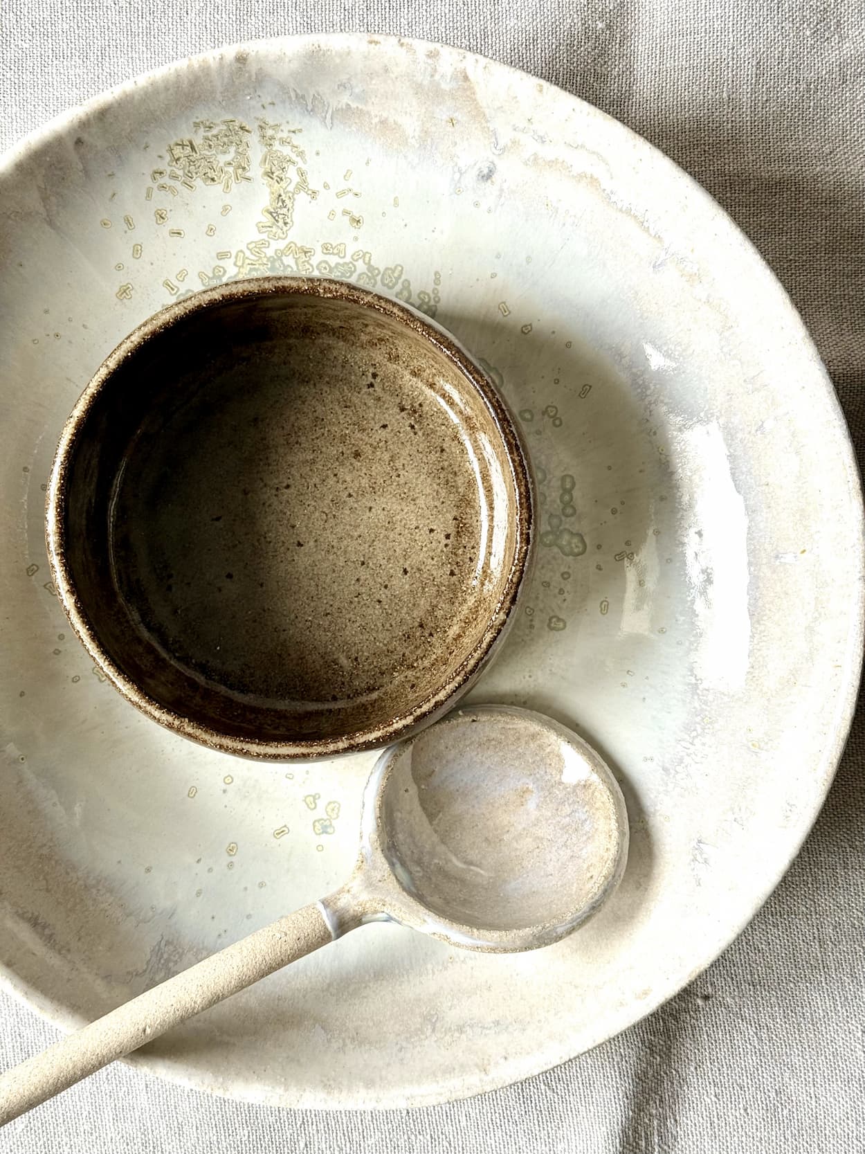 Un bon repas commence souvent dans un beau bol. Ici, je façonne chaque pièce en grès artisanal, sans tour, au pincé, à la plaque ou au colombin. Je travaille principalement avec du grès chamotté, une terre robuste et pleine de caractère, idéale pour des bols et saladiers pensés pour le quotidien.