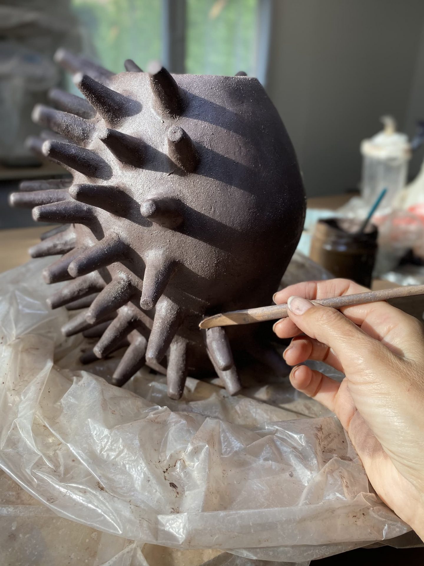 Les formes organiques, les détails bruts et la texture du grès chamotté racontent l’histoire de mes créations.