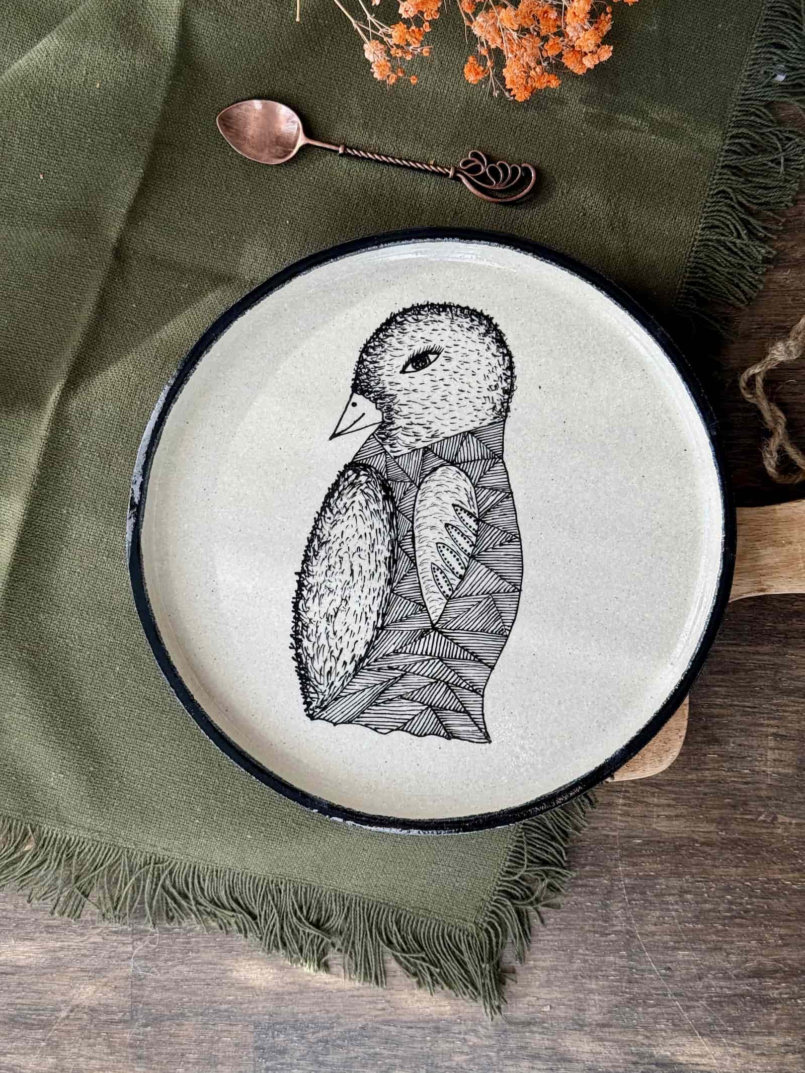 L’assiette LE PINGOUIN est une assiette en céramique artisanale façonnée à la main en grès blanc chamotté. Je la travaille avec des gestes lents pour lui donner une forme simple, vivante et pleine de douceur.