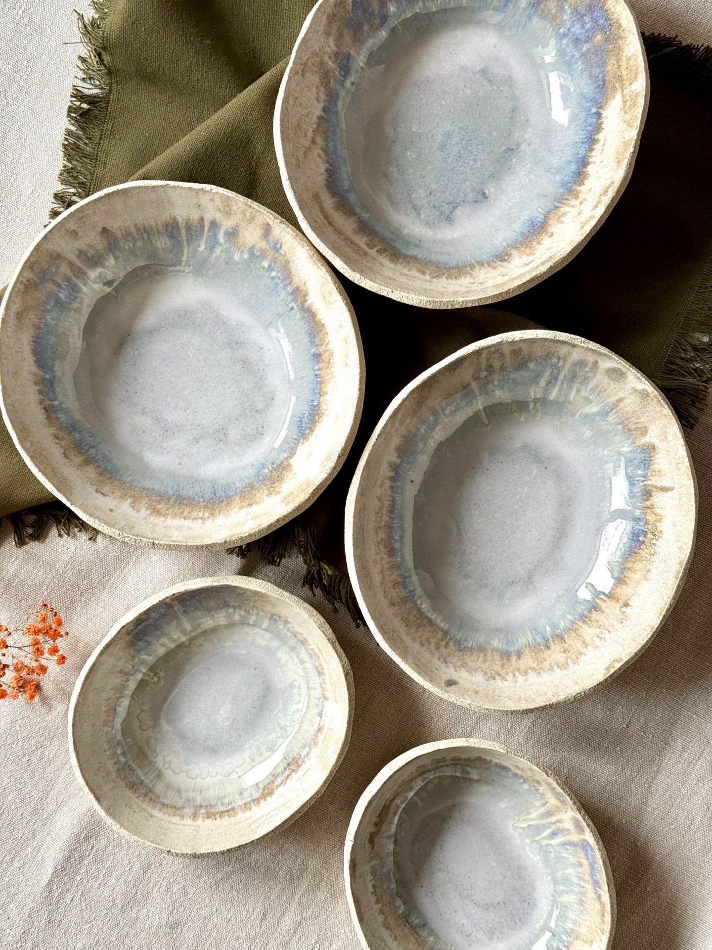 Compatible lave-vaisselle et micro-ondes. Comme toute céramique artisanale, le dessous non émaillé peut retenir légèrement l’humidité après lavage. Bien laisser sécher avant de ranger. Chaque pièce en grès réagit différemment à la cuisson : de légères variations de forme, de taille ou de couleur sont possibles, ce qui rend chaque bol unique.