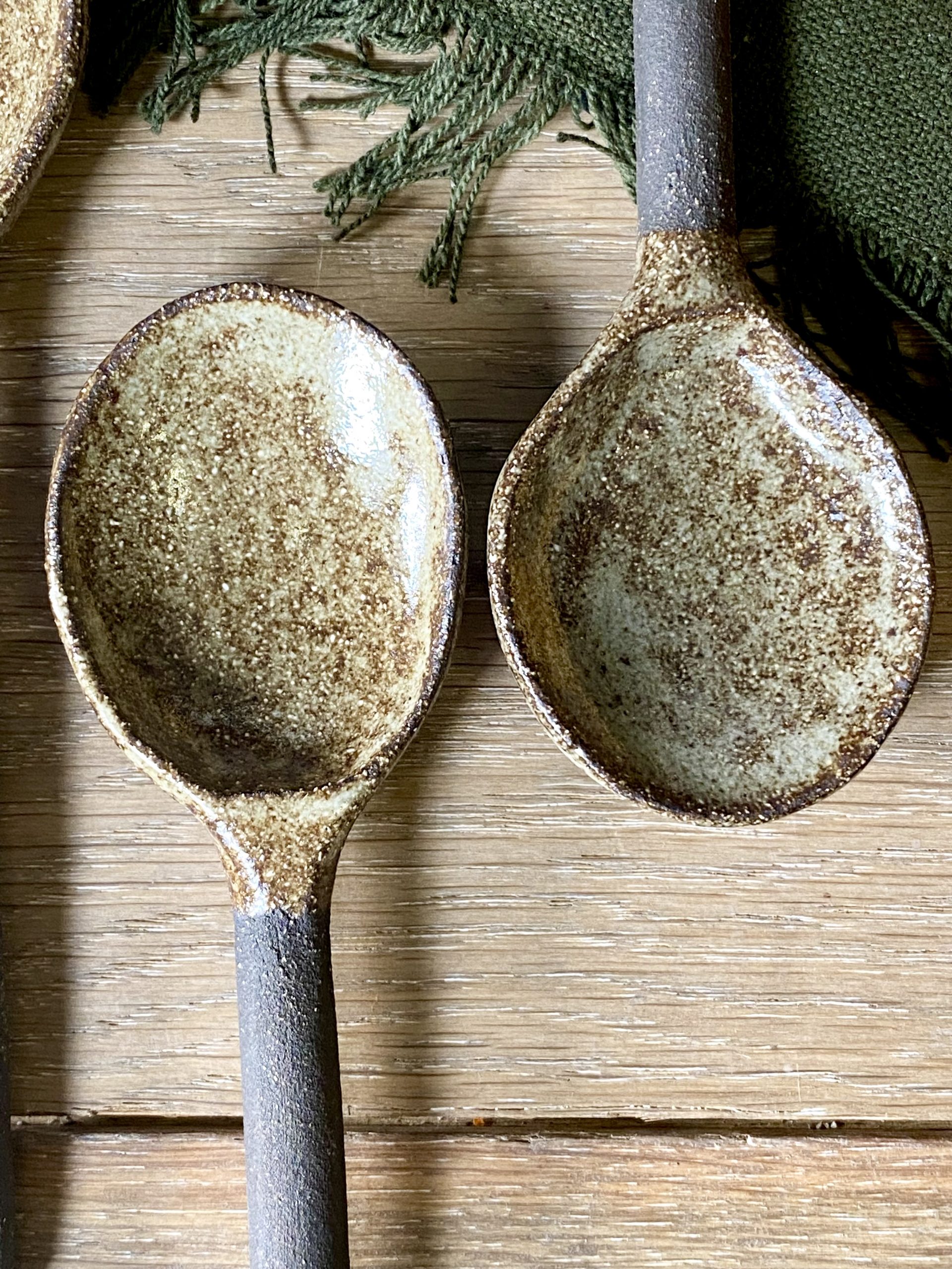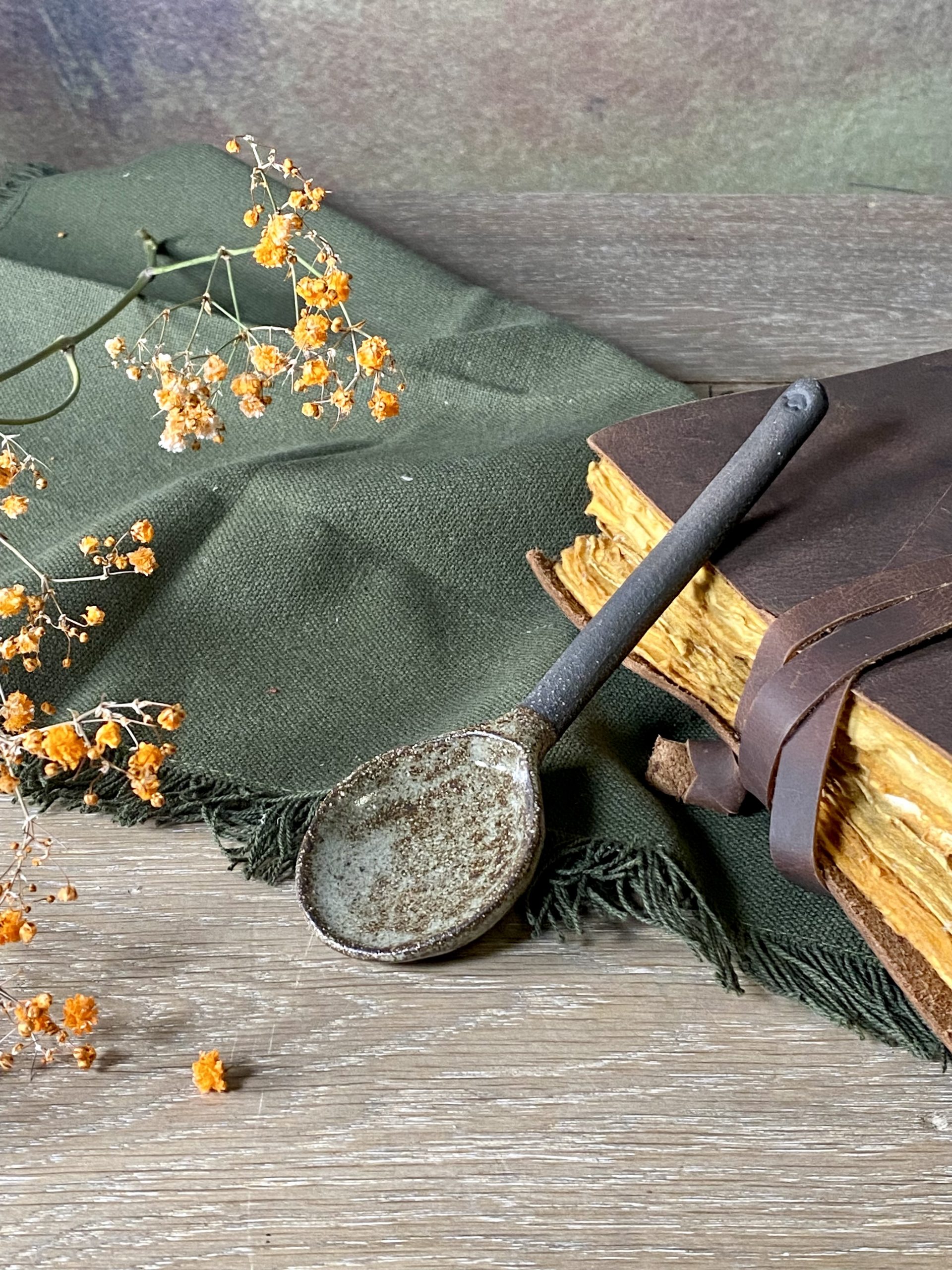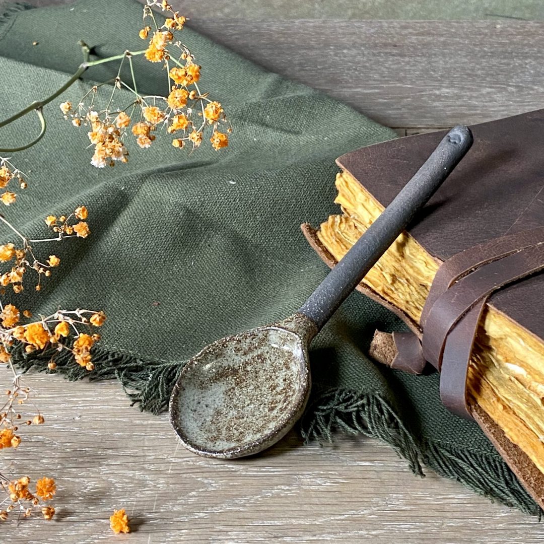 La cuillère BINTOU en céramique artisanale marie originalité et caractère. Son manche brut révèle la texture naturelle du grès et en fait une pièce singulière.