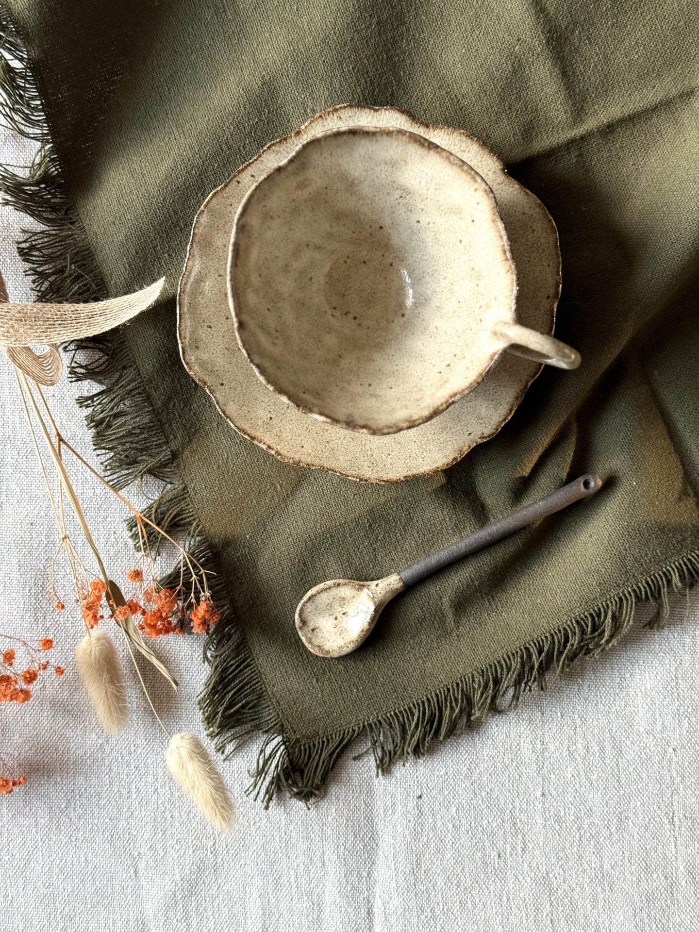 Façonnée à la main, la cuillère ROSA accompagne la tasse LILIUM avec douceur. Idéale pour mélanger ton thé, ton café ou ton lait, elle prolonge le plaisir du geste et complète l’univers poétique de la collection.
