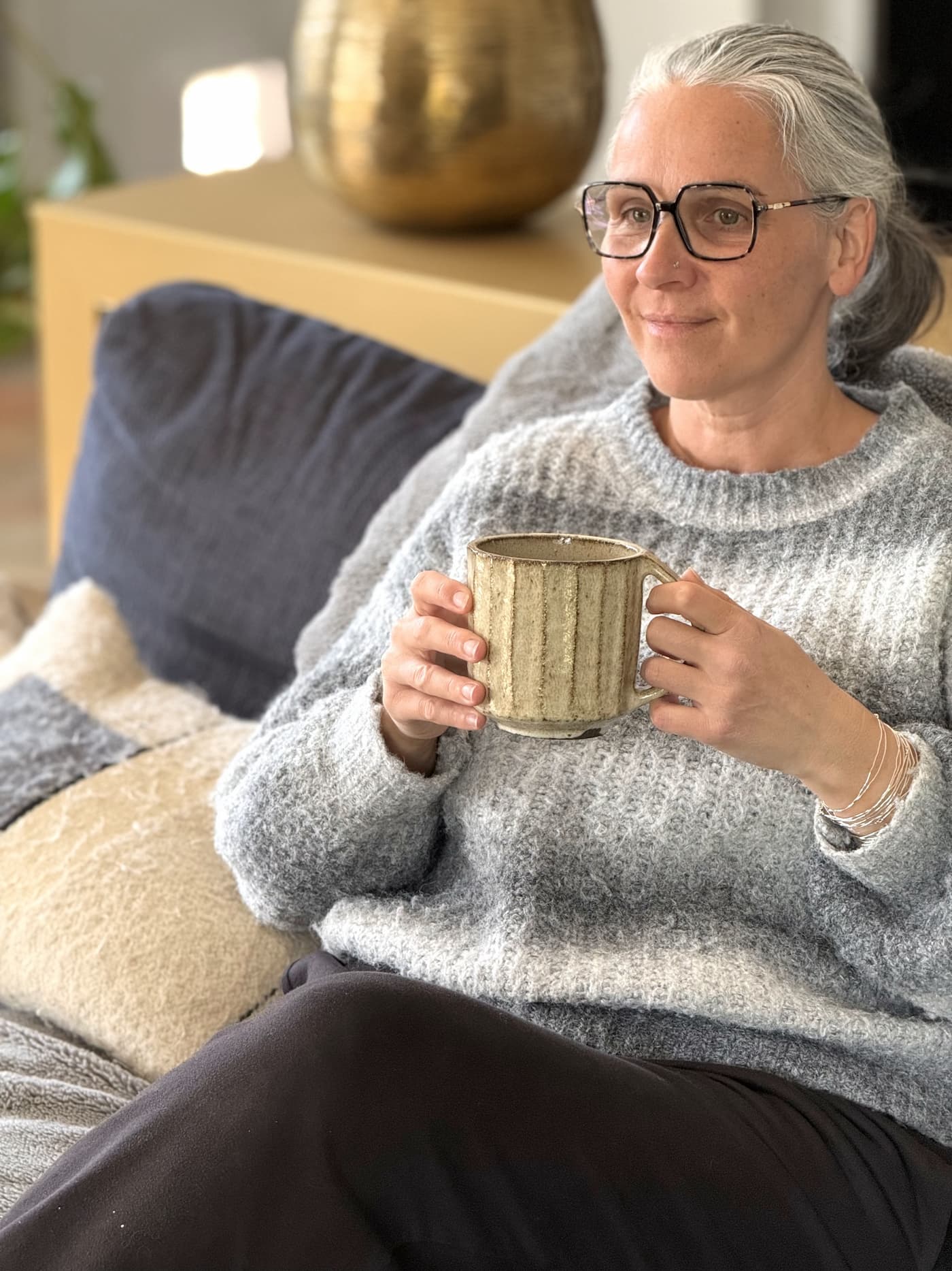 Ce mug artisanal en grès noir de 550 ml accompagne tes moments du quotidien. Il est parfait pour les boissons chaudes, mais aussi pour prendre le temps, ralentir et profiter.