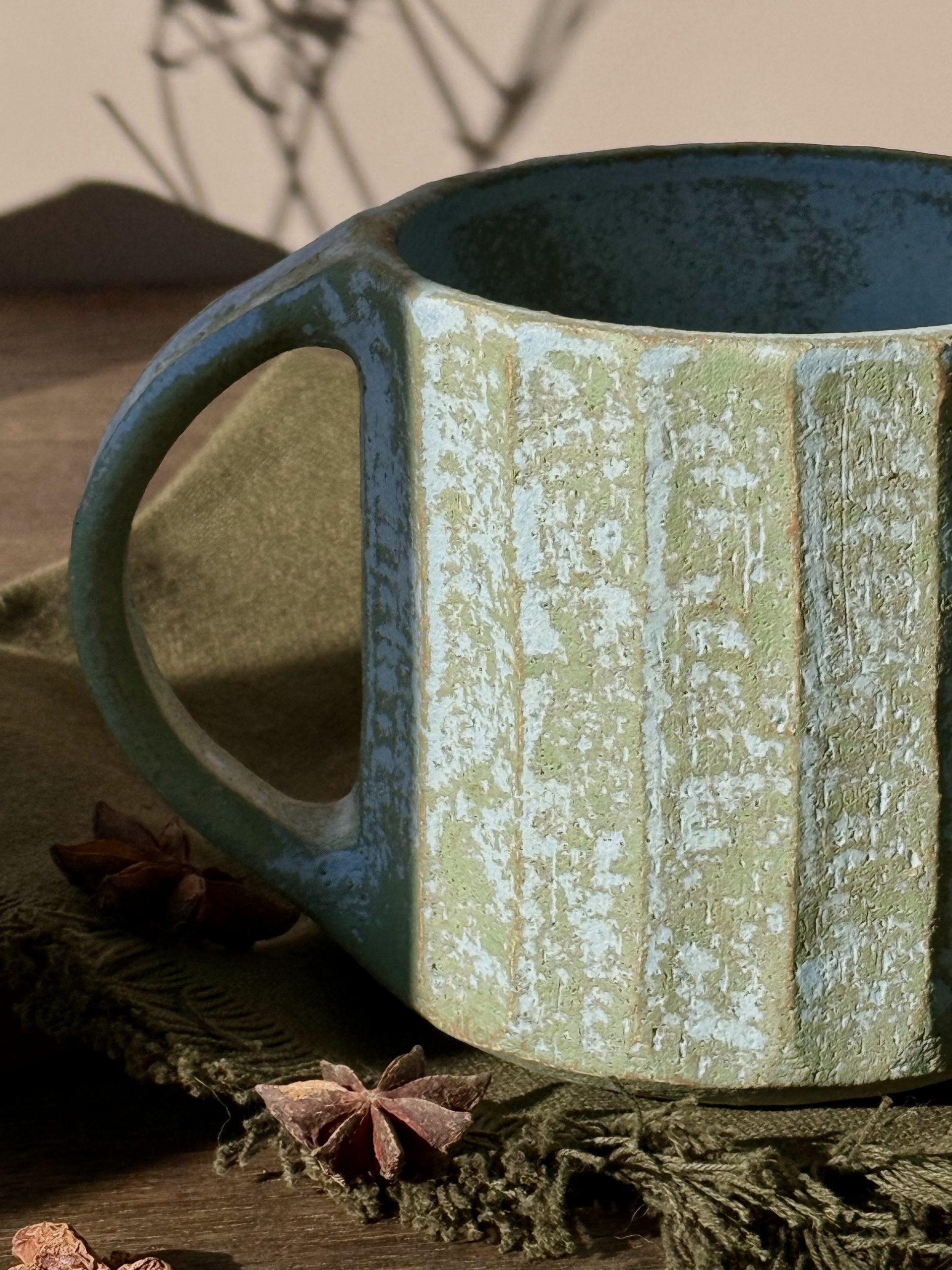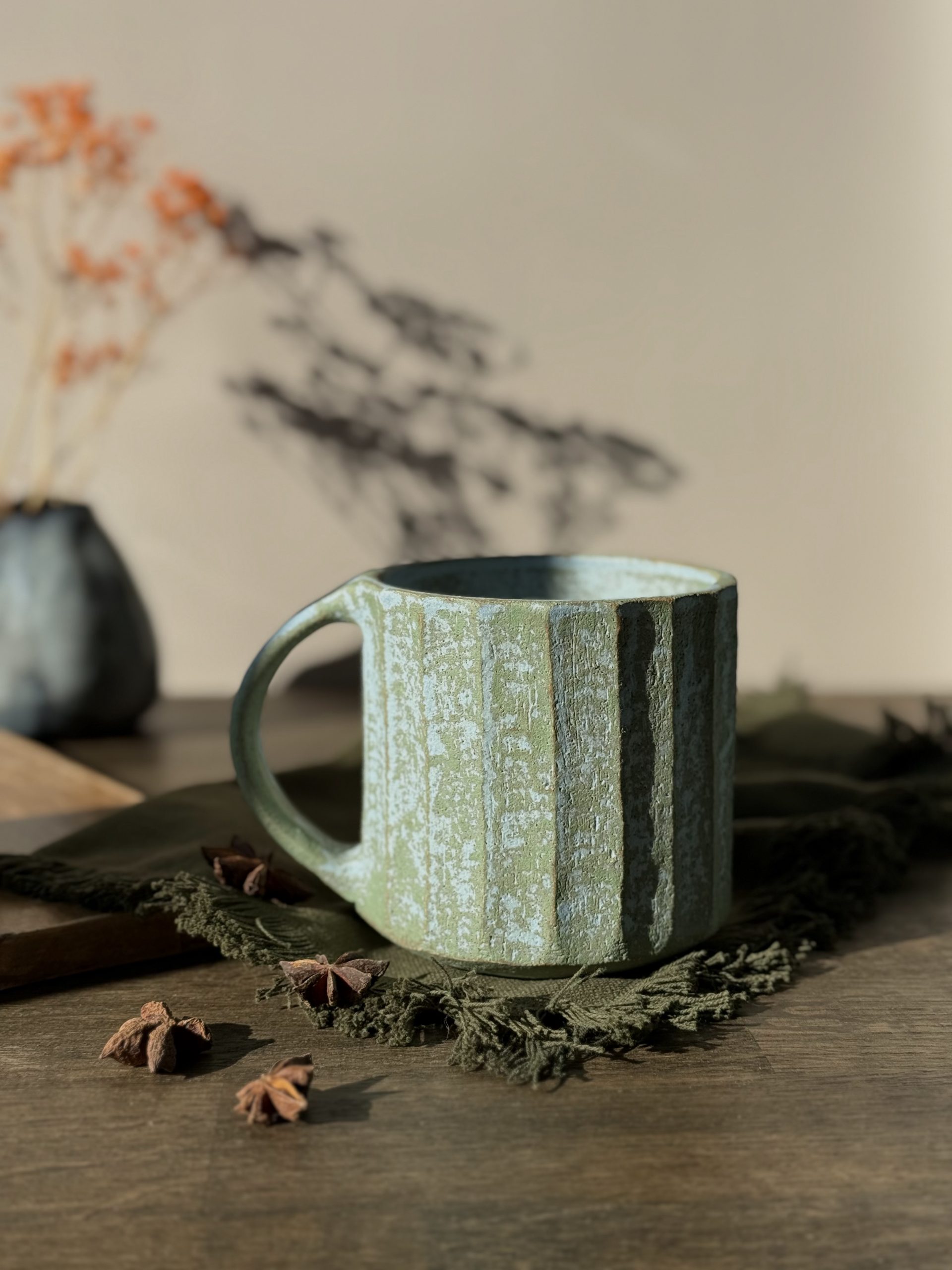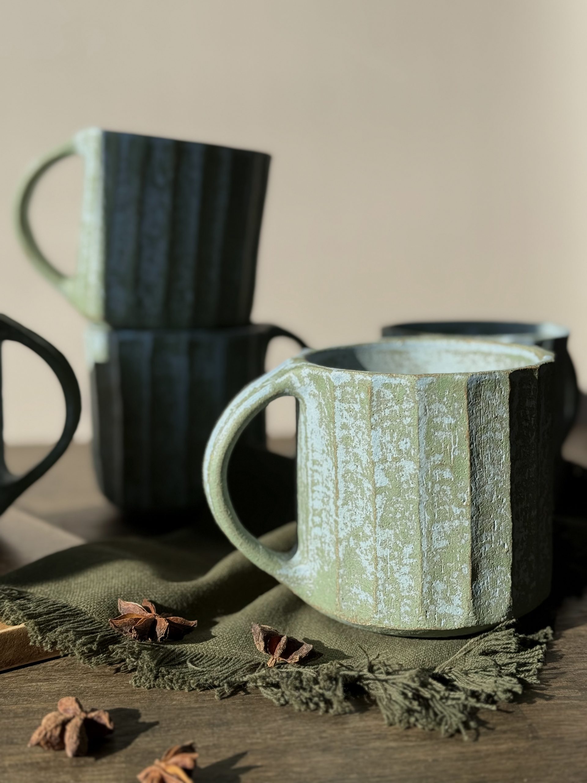 Le grand mug KAITO en céramique artisanale, allie robustesse et authenticité. Son émaillage mat révèle des nuances subtiles et uniques qui captent la lumière.