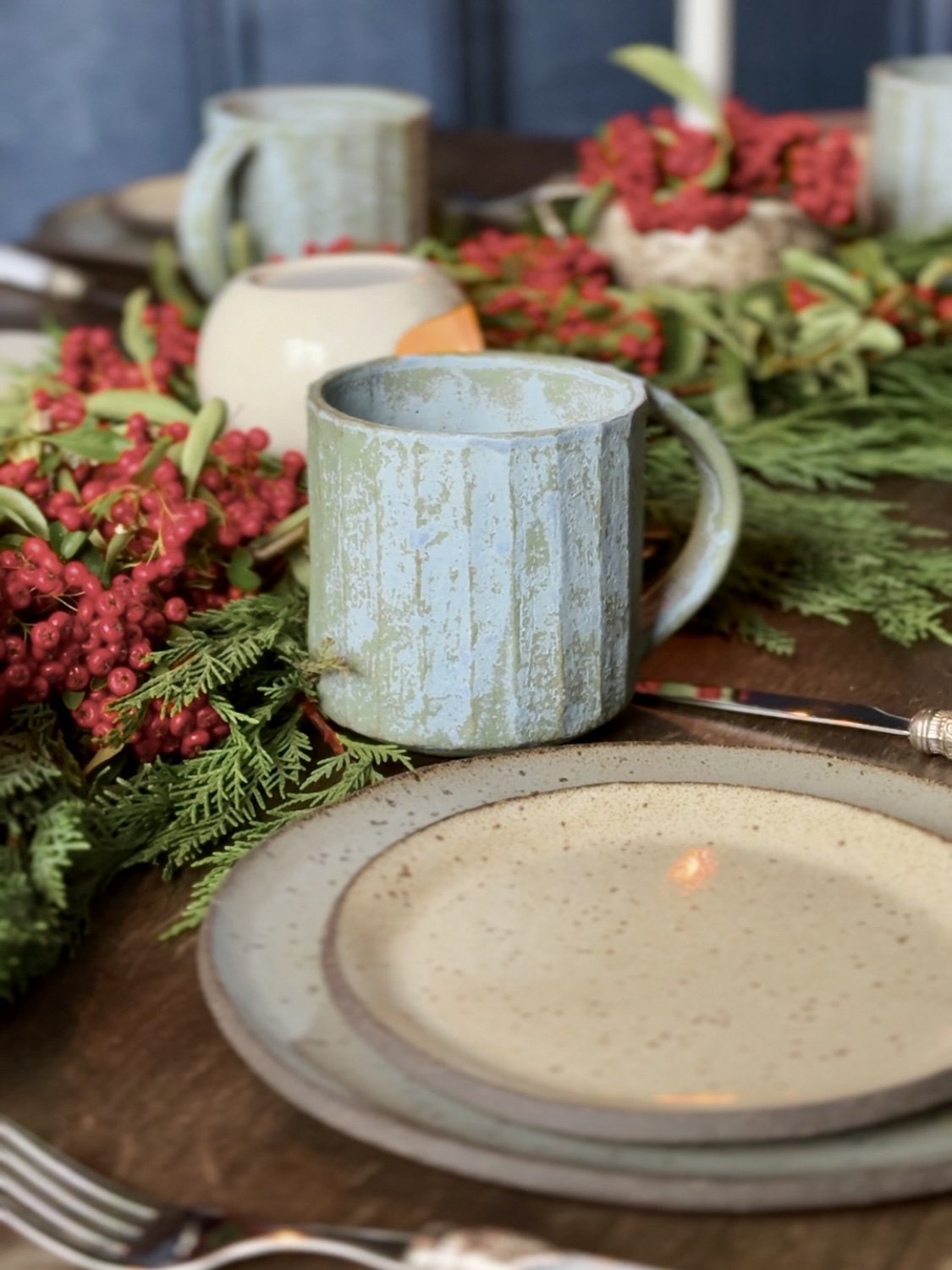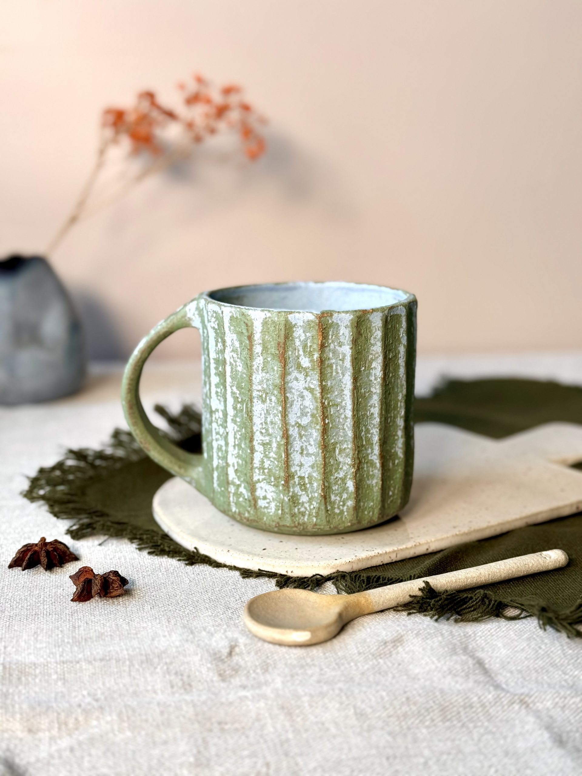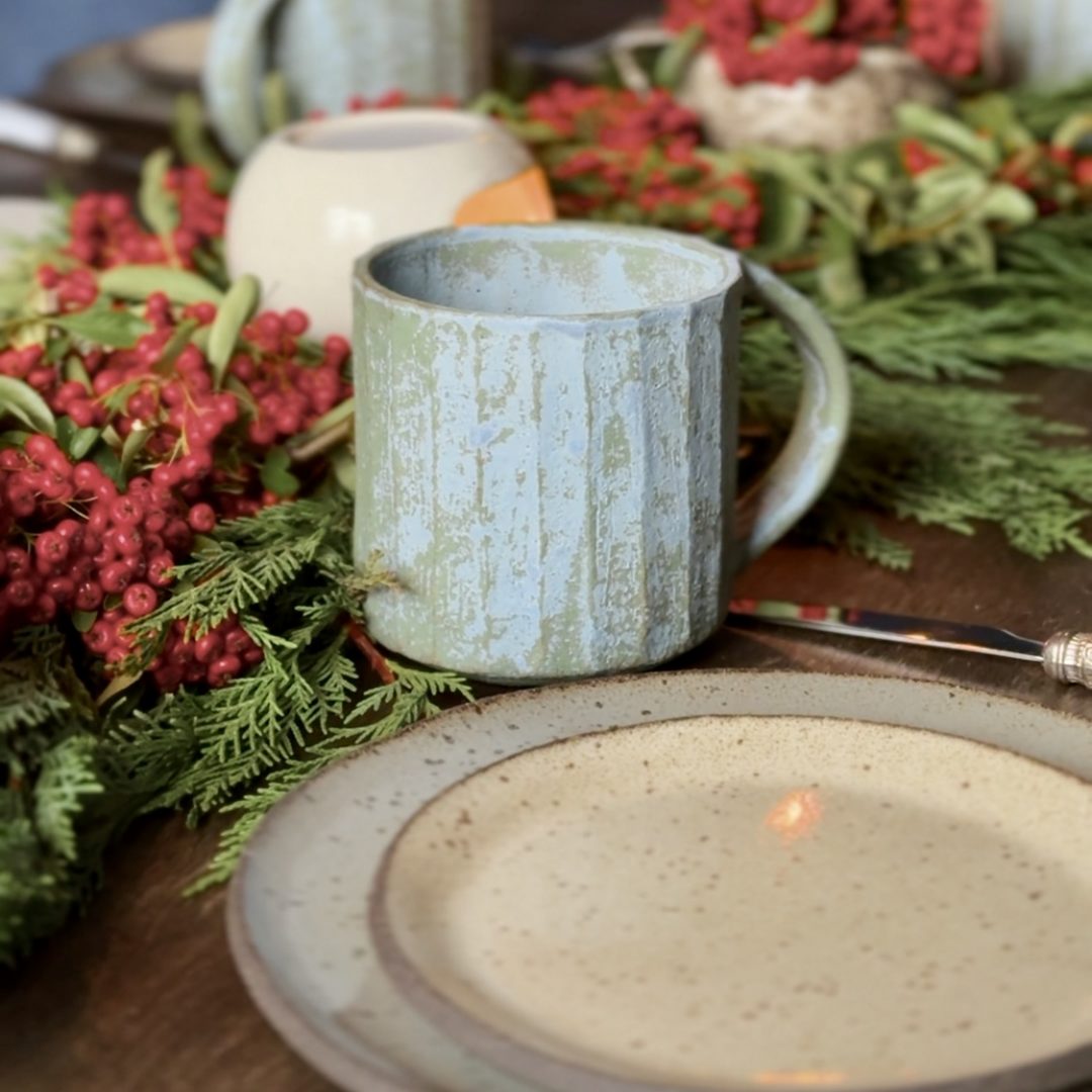 Le grand mug KAITO en céramique artisanale, allie robustesse et authenticité. Son émaillage mat révèle des nuances subtiles et uniques qui captent la lumière.