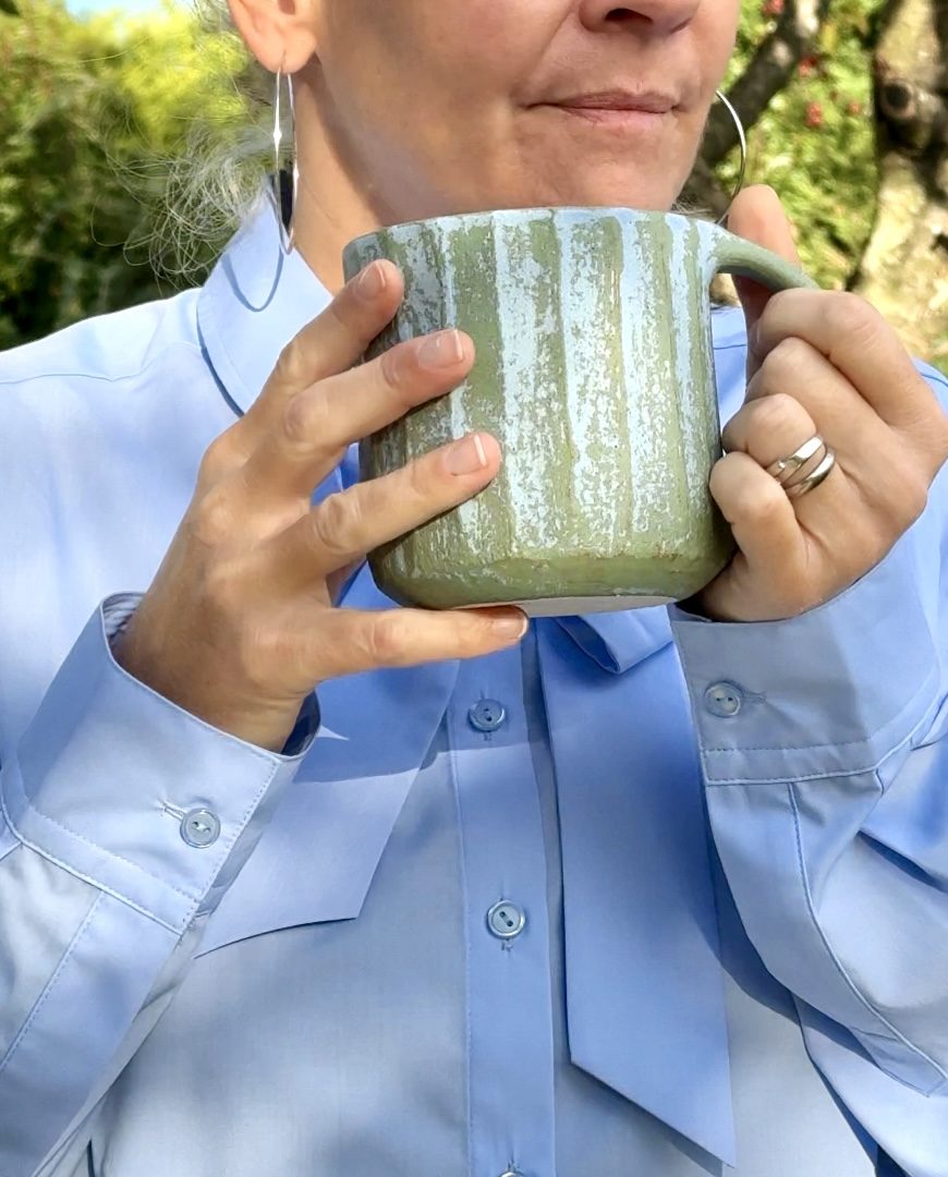 Compatible lave-vaisselle et micro-ondes. Comme toute céramique artisanale en grès, le dessous non émaillé peut retenir légèrement l’humidité après lavage. Bien laisser sécher avant de ranger. Chaque pièce en grès réagit différemment à la cuisson : de légères variations de forme, de taille ou de couleur sont possibles, ce qui rend chaque mug unique.