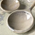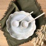 Compatible lave-vaisselle (sauf les couverts, lavage à la main recommandé) et micro-ondes. Comme toute céramique artisanale, le dessous non émaillé peut retenir légèrement l’humidité après lavage. Bien laisser sécher avant de ranger. Chaque pièce en grès réagit différemment à la cuisson : de légères variations de forme, de taille ou de couleur sont possibles, ce qui rend chaque coupelle unique.