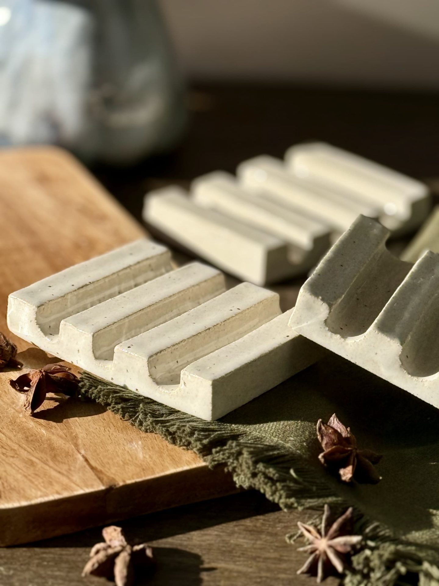 Chaque pièce est réalisée dans mon atelier en Haute-Savoie. De légères variations peuvent apparaître après cuisson : elles rendent chaque porte-savon unique.
