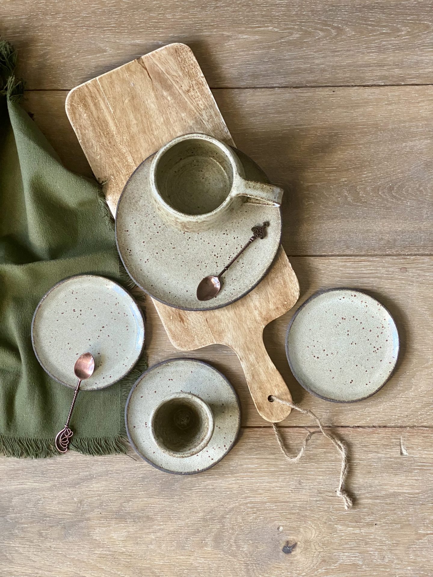 La sous-tasse ASMA conjugue sobriété et caractère artisanal. Sa forme généreuse (17,5 cm) en fait une pièce polyvalente, parfaite pour accompagner le mug COUMBA, mais aussi pour présenter un dessert, une entrée légère ou quelques douceurs.