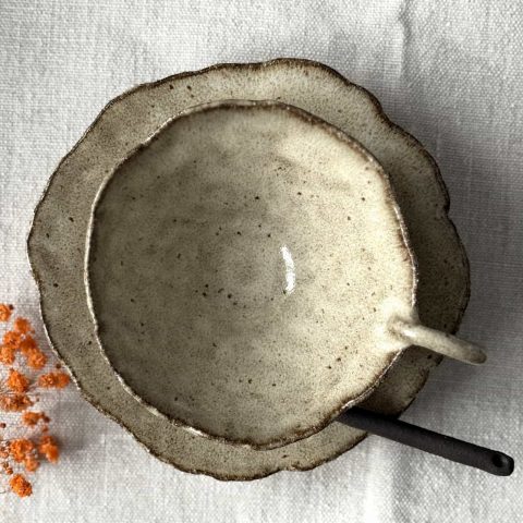 Le contraste entre l’émail lumineux et la texture légèrement brute du grès révèle toute la matière. Chaque tasse est réalisée dans mon atelier en Haute-Savoie.