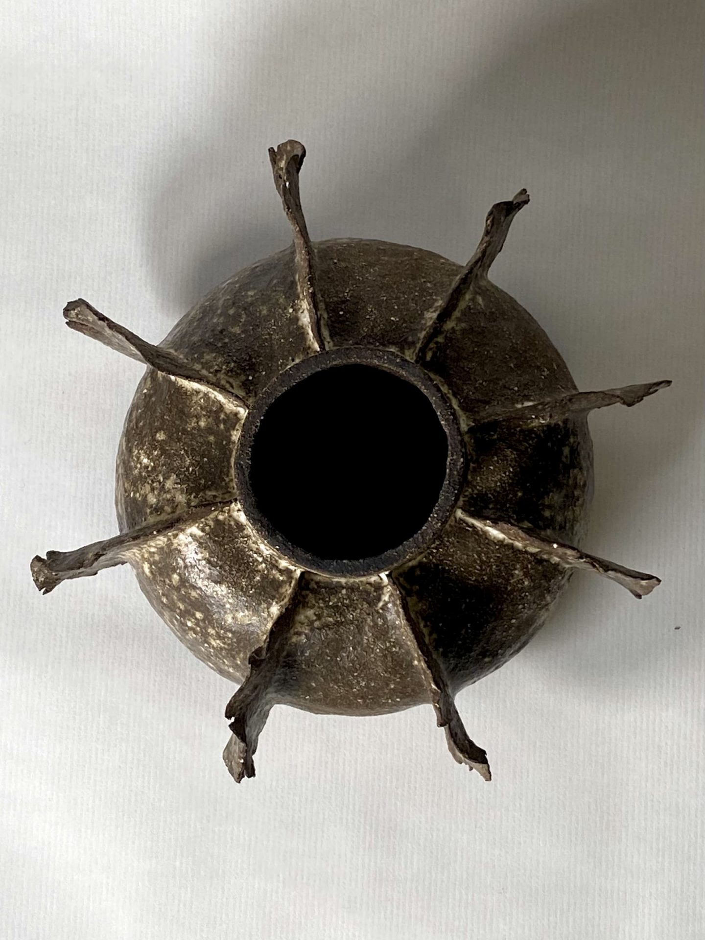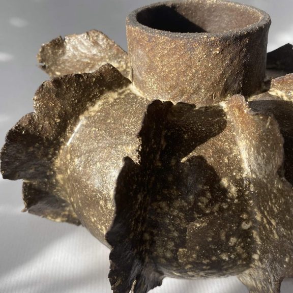 Sa forme organique et ses reliefs marqués lui donnent une présence forte, brute et sculpturale.
