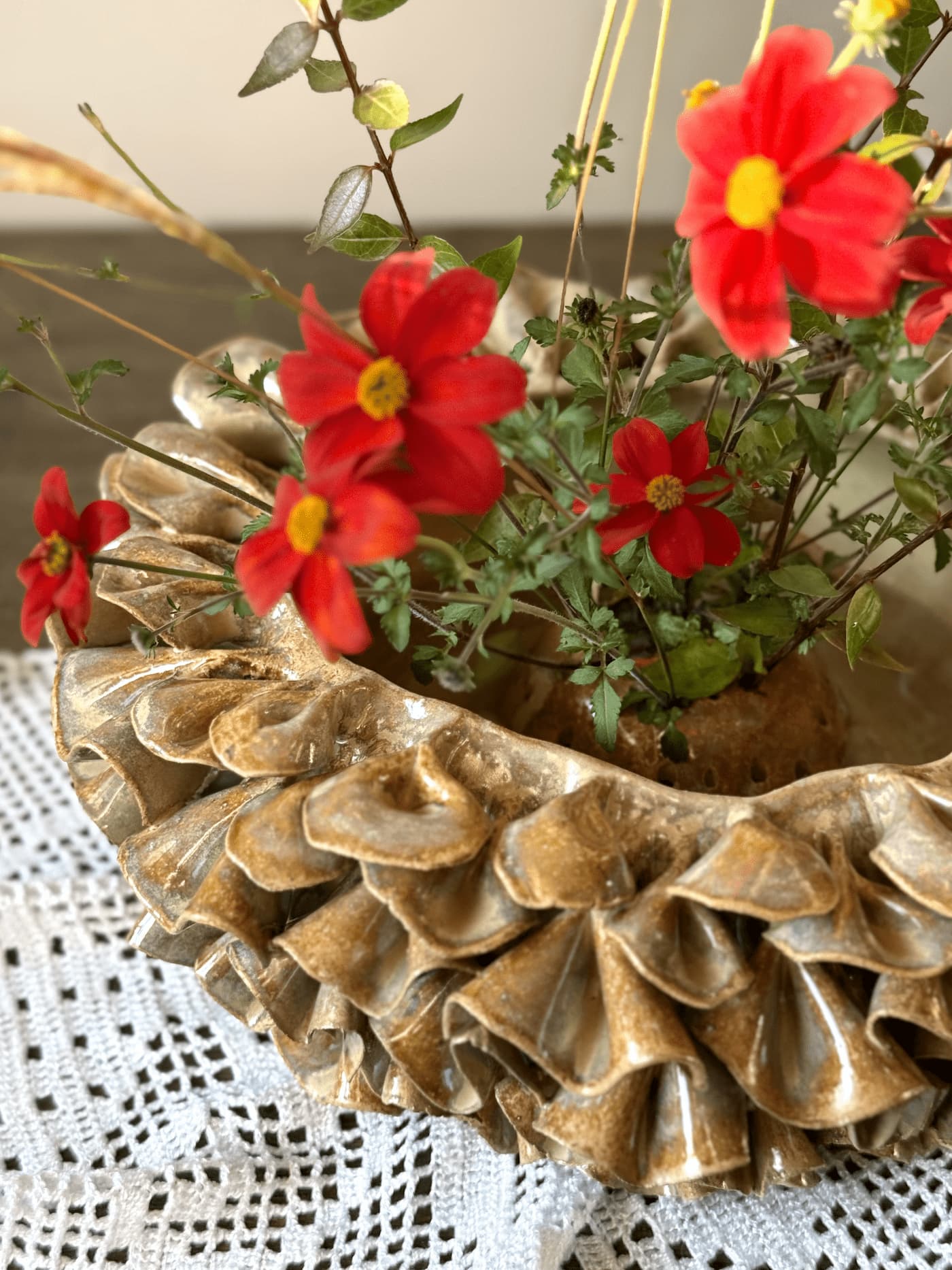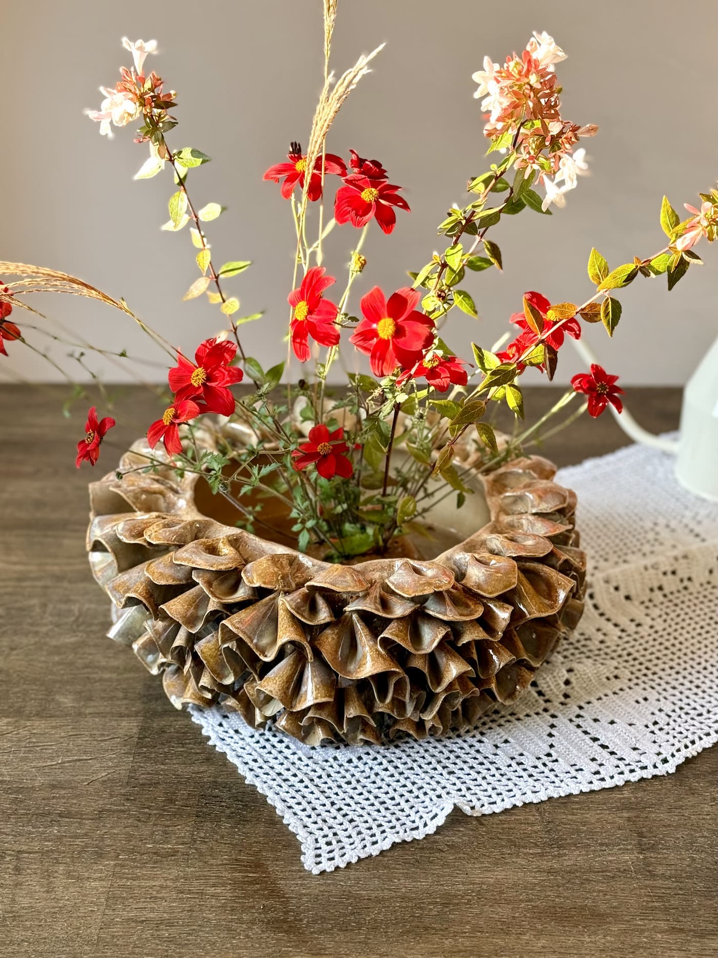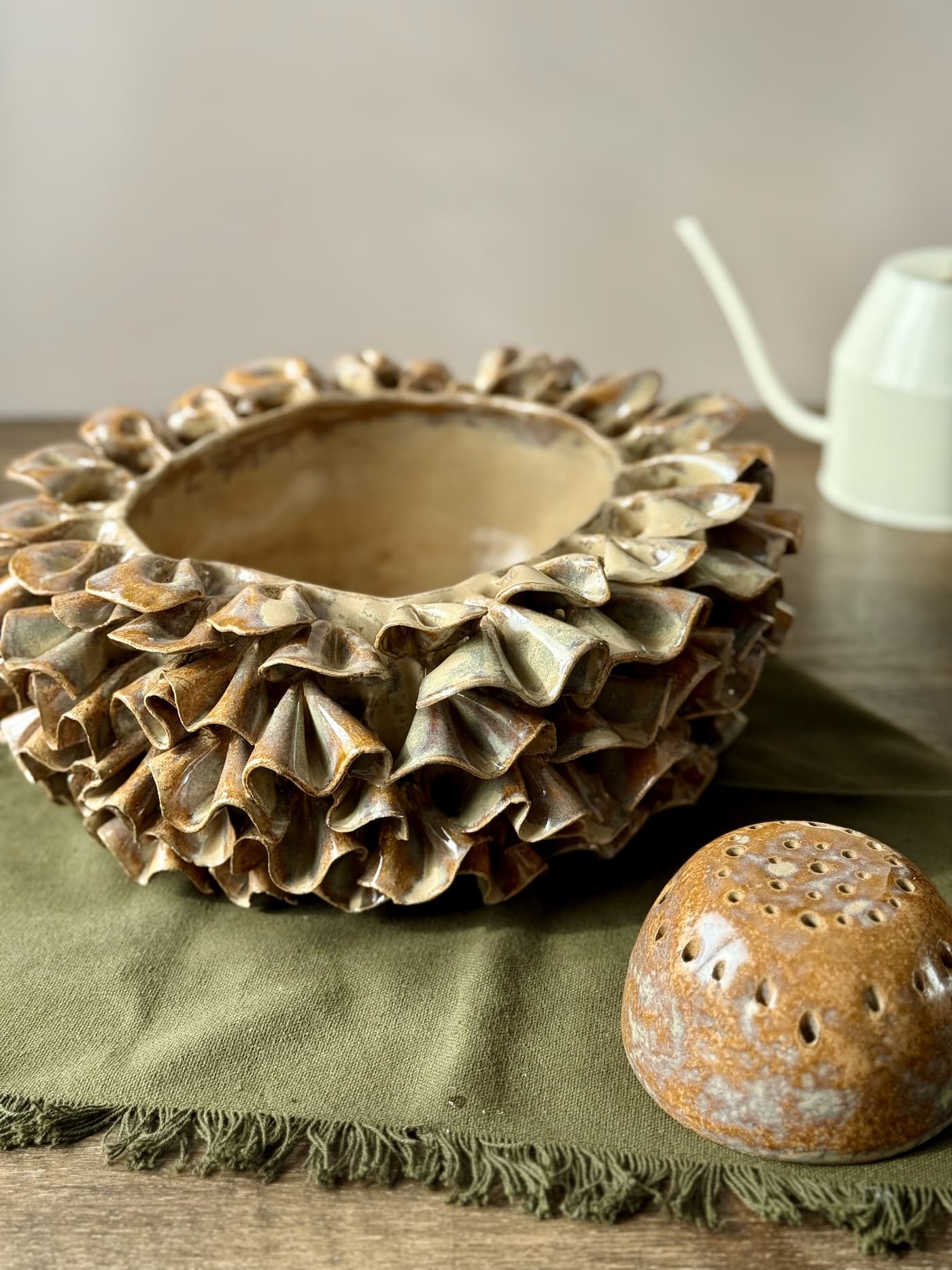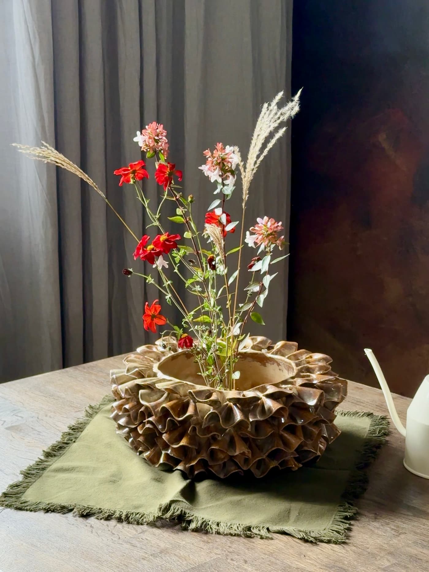 Étanche et livré avec son dôme perforé, il te permet de piquer facilement les fleurs fraîchement cueillies lors de tes balades ou dans ton jardin pour créer des compositions naturelles et aérées. Une pièce unique et sculpturale qui apporte poésie, caractère et douceur à ton intérieur.